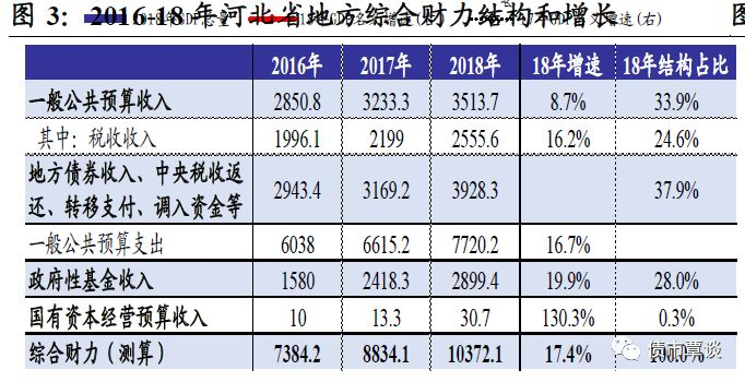 债务风险:2018年末河北省地方政府债务余额7278.26亿,同比增长18.3%,“地方债务余额/GDP”为20%,“地方债务余额/地方综合财力”衡量的债务率为68%。从地级市看,唐山市、秦皇岛市和承德市债务率相对略高。