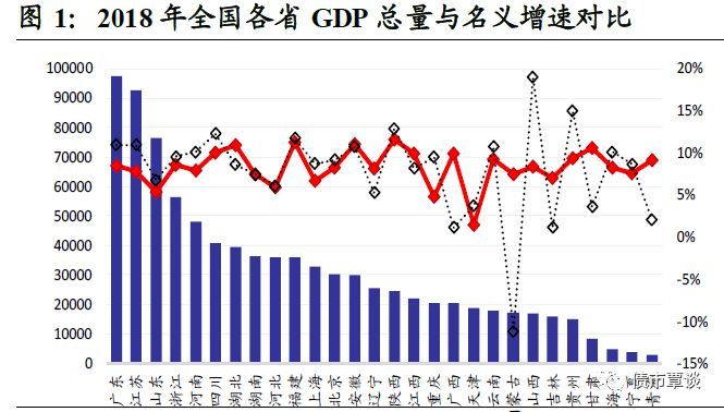 从GDP实际增速看,张家口市、石家庄市、唐山市、秦皇岛市和邢台市增速较快,均在7%以上,承德市和沧州市相对较慢,为6.4%;从GDP名义增速看,秦皇岛市增长最快为9%,其次张家口市、廊坊市和唐山市也均在6.5%以上,而保定市、石家庄市则均为负增长,分别为-5.6%和-1.5%。与18年全国名义GDP增速相比,河北省及下辖全部11个地市均低于全国平均水平。