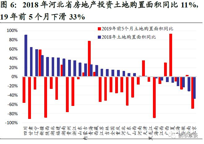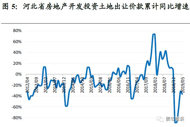 土地出让金增长整体低迷,但2017-18年大涨。2017-2018年,受棚改政策刺激,河北省房地产开发投资土地出让金额同比上涨36.8%和8%,土地出让面积扩容11.2%和11.3%,对国有土地出让金收入改善明显。但2019年以来土地出让量价齐落,前5个月房地产投资土地购置面积和出让价款分别下降33.3%和36.3%。