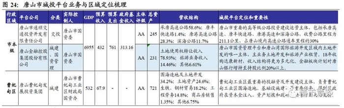 唐山市本级平台2家,区级平台1家,均为主体AA级。唐山市通顺交通投资开发有限责任公司是唐山市重要的高等级公路投资建设运营主体;唐山金融控股集团为市国资管理平台和唐山湾国际旅游开发区域内土地开发的唯一主体。区级平台唐山曹妃甸发展投资集团,则是曹妃甸工业区最重要的投融资开发主体,负责曹妃甸工业区围海造地、基建等任务