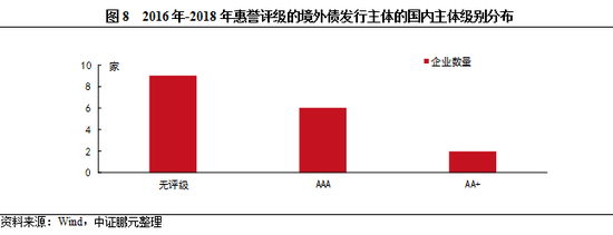 在这17个发行主体中,9个主体没有国内评级,拥有评级的8个发行主体集中在AA+以上级别。其中,AAA级主体6个,AA+级主体2个,信用重心较高。