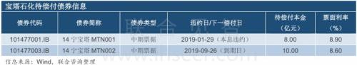 “14宁宝塔MTN001”未在2019年1月29日到期兑付本息8.71亿元,构成实质性违约。