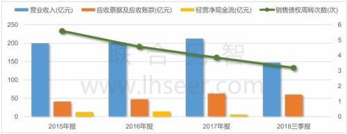 2017年胜通集团在收入微增5.22%至212.59亿元的情况下,期末应收票据及应收账款合计增长32.32%至62.68亿元,年内经营性现金流同比下降59.83%至5.65亿元。其中前五大客户中山东恒丰橡塑有限公司已于2018年5月22日被列为失信被执行人,中国化工橡胶桂林轮胎有限公司已于2018年9月3日被银行申请诉前财产保全。