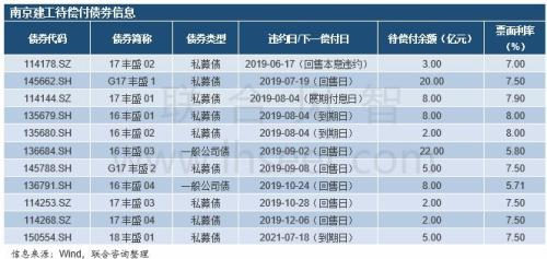 2019年6月17日,因资金紧张,南京建工未能兑付私募债“17丰盛02”回售本息。此前2019年4月15日公司曾将“17丰盛01”应兑付的利息延期111天至2019年8月4日。