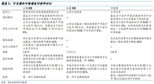 三是发行条件不同,可转债的发行条件依据《上市公司证券发行管理办法》[10]的规定,可交债依据《上市公司股东发行可交换公司债券试行规定》和《非公开发行公司债券业务管理暂行办法》的规定,公募EB和私募EB的发行条件也存在一定差异。