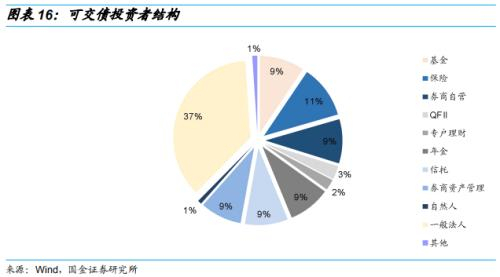 根据上交所公布的19年6月的可交债持有人数据,可以看到一般法人、保险和基金是可交债的主要配置机构。一般法人的托管量为599.99亿元,保险机构为181.94亿元,基金为154.99亿元。各类基金中债券型基金是公募EB的主要投资者,而对于私募EB来说,由于流动性不佳,公募机构配置较少,多被私募基金和基金专户所持有,券商自营和券商资管由于风险偏好较高,也会配置一部分私募EB。