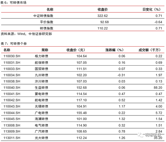 7月26日转债市场,平价指数收于92.68点,下跌0.64%,转债指数收于110.22点,上涨0.71%。172支上市可交易转债,除中宠转债、福能转债停牌,亚太转债横盘外,146支上涨,23支下跌。其中圣达转债(8.80%)、隆基转债(3.35%)、东音转债(2.73%)领涨,溢利转债(-1.84%)、杭电转债(-1.08%)、泰晶转债(-0.65%)领跌。172支可转债正股,除中宠股份、福能股份停牌,洪涛股份、通威股份、江苏银行、中信银行、山鹰纸业、岭南股份、新时达、顾家家居、广电网络、厦门国贸和上海环境横盘外,85支上涨,76支下跌。其中,兄弟科技(9.95%)、奇精机械(7.43%)、圣达生物(7.11%)领涨,台华新材(-4.10%)、杭电股份(-3.67%)、新泉股份(-3.31%)领跌。