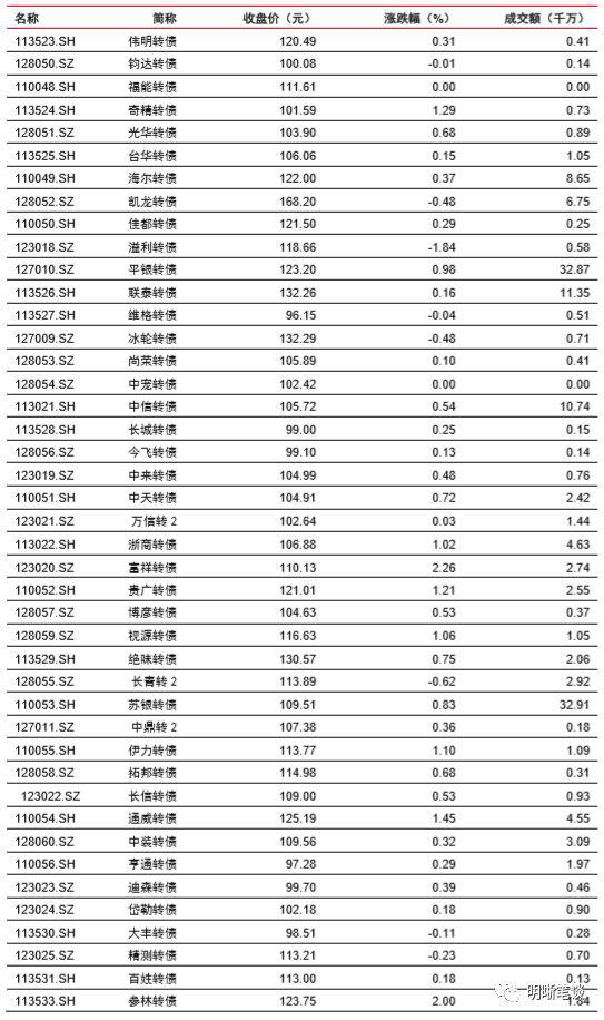 稳健弹性组合建议关注海尔转债、蒙电转债、文灿转债、水晶转债、雨虹转债、玲珑转债、久立转2、司尔转债、启明转债、中鼎转2和大银行转债。