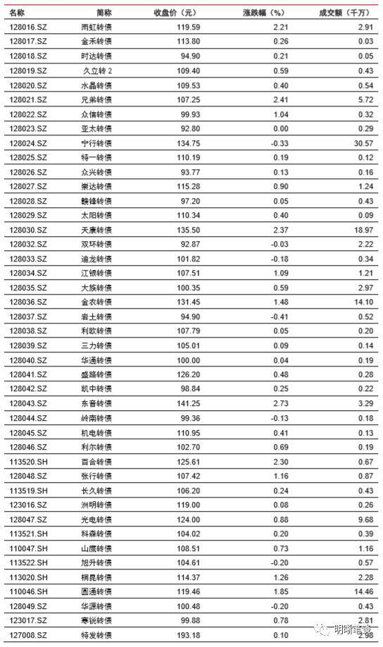 高弹性组合建议重点关注参林(百姓)转债、拓邦(和而)转债、绝味转债、高能转债、精测转债、通威转债、洲明转债、光电转债、桐昆转债、天康转债以及金融转债。