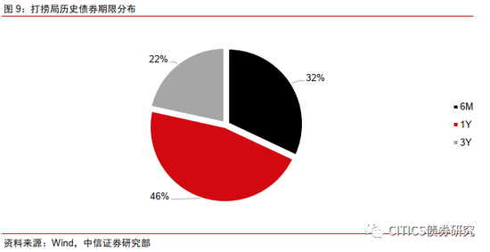 打捞局主体发行短债居多,符合交易属性为主的机构。打捞局历史债券期限分布来看,均为3年期以下的短期债券,历史平均发行期限1.36年。其中以1年期债券为主,发行额占比46%。其次为6个月的短期债券,发行额占比约为32%。打捞局整体主体发行债券短债居多,未来如果发行人继续尝试直接融资渠道,其短期信用品类则更适合弹性策略为主的机构需求。