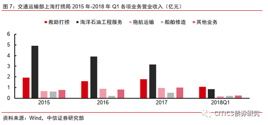 以上海打捞局为例,其经营性业务主要包括远洋拖航、海洋石油工程及工业销售等。打捞局在进行救助打捞工作的同时,通过发挥自身专业级装备优势,开展远洋拖航、海洋石油工程及工业销售等经营性业务,海洋石油工程服务为该局收入和利润的主要来源。