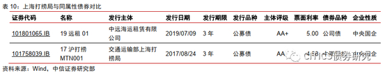 以上海为例,打捞局债券品种具有相对价值优势。上海打捞局存续债券17沪打捞MTN001,对比同区域、同评级发行的中央国企债券来看,我们选取同为上海区域央企属性且具有相似业务属性的中远海运租赁有限公司发行的19远租01进行发行时的票面利率对比。虽然无论是发行时期、业务属性、债券品种和认购持仓机构目的均不能完全放在同一维度进行对比,客观来说确实很难有个券可以镜像对比另外一支个券,但尽量找到契合的方面其依然可以作为相互参考的对象。相比较不同年份的融资环境和机构偏好,打捞局在2017年下半年的时期仍然得以低成本发行,很大程度上也印证其市场认可的主体资质和相对融资成本优势。