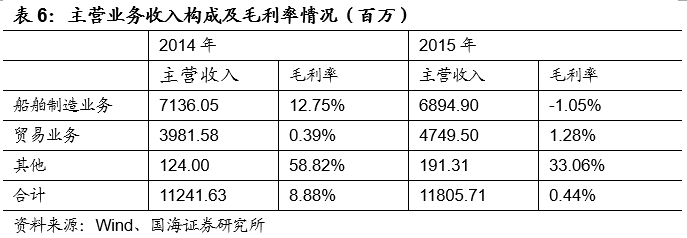 受行业景气度较差等因素影响,公司船舶制造业业务经营状况差,2015年毛利率大幅下滑至负值,贸易毛利率略有上升,但仍处于较低水平,公司主营业务盈利能力不足。同时,船舶制造业特殊的结算模式加剧了公司的资金压力,现金获取能力不足。总体而言,公司经营性风险和流动性风险极大,现金流枯竭,持续经营能力受到影响。