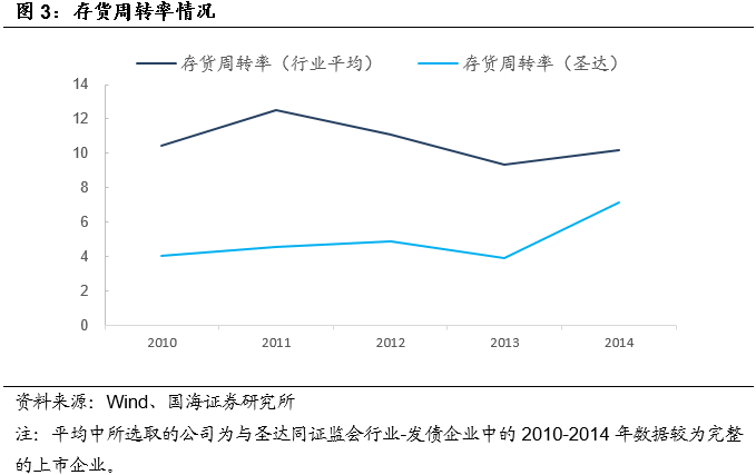 在资产质量及周转效率上,圣达的存货周转率水平同样低于行业平均水平,反映了圣达购、产、销效率不高,存货资产变现能力弱。