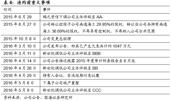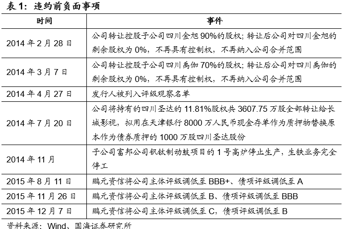 违约前重大事项主要包括:1)转让子公司股权 2)主营业务停工 3)评级连续被调低。