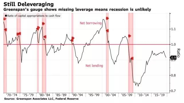 近期,无论是IMF、世界银行等国际组织,还是美国国会预算办公室等官方半官方机构,均预测美国经济将继续缓慢下行。但是,前美联储主席艾伦格林斯潘认为,尽管GDP增长放缓,但现在就担心美国经济衰退还为时过早。格林斯潘指出,资本投资与现金流的比率是他论点的关键指标。目前,企业普遍在减少债务,而且自大衰退以来借款一直没有增加。