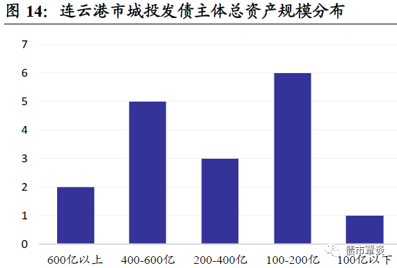 从城投平台总规模来看,资产600亿以上有2家,在400-600亿区间有5家;在200-400亿区间有3家;100-200亿区间有6家,100 亿以下有1家。