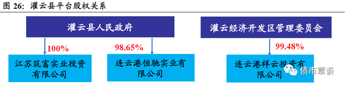 灌云经开区有3家平台公司,分别为祥云投资公司、连云港卓途实业有限公司、灌云建云建筑工程公司,除发债平台祥云公司外,另外两家资产规模均在15亿以下。