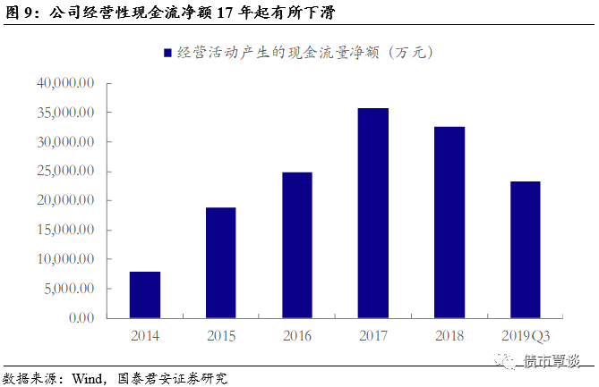 公司经营性现金流2017年起有所下滑。公司的经营活动每年均能产生正的现金流净额,有利于公司持续经营和扩大生产。公司经营性现金流净额于2017年达到峰值,为3.57亿元,但此后经营性现金流有所下滑,2018年为3.25亿元,2019年前三季度为2.33亿元。