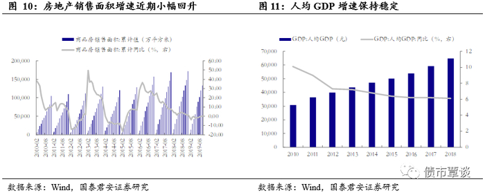 定制家具行业主要受下游房屋销售与居民消费能力影响。定制家具行业是一个新兴的细分领域,行业发展迅速,主要受到下游房屋销售与居民消费能力影响,现阶段行业周期性不明显。未来如果国内房地产市场交易出现长期低迷或大幅下滑,或者居民消费能力增长乏力,将对该行业景气度产生一定的不利影响。房地产市场交易情况可从商品房销售面积来观察,目前商品房销售面积累计同比整体处于下行区间,近期有所回暖,2019年10月商品房销售面积累计同比为0.1%。居民消费能力可从人均GDP观察,近几年我国人均GDP增速维持在6.1%-6.4%之间,2018年我国人均GDP增速为6.1%。