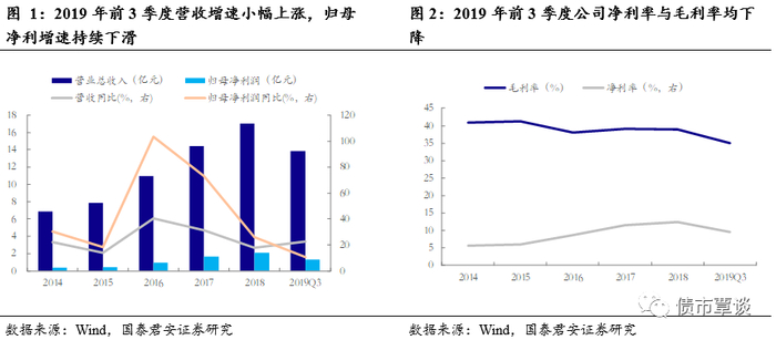 公司从属定制家具行业。公司主营业务为整体厨柜、衣柜和木门等全屋定制家具产品的研发、设计、生产、销售、安装,致力于为消费者提供高品质、个性化的定制家具综合服务。公司拥有被认定为“中国驰名商标”的“金牌厨柜”品牌,除此之外,公司旗下还拥有“桔家衣柜”、“桔家木门”、“MALIO玛尼欧”等高端品牌。2018年全年营收17.02亿元,YoY+18.01%;归母净利润2.1亿元,YoY+26.05%。2019年前三季度营收13.87亿元,同比+22.75%;归母净利润1.32亿元,同比+10.78%。自2014年起,公司毛利率整体有所下降,但净利率有所提高,2018年毛利率为39%,净利率为12.35%。2019年前三季度公司毛利率和净利率均下降,毛利率降至35.07%,净利率降至9.5%。