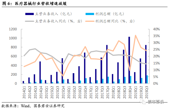 医疗器械行业近年来营收增速放缓。医疗器械领域是振德医疗收入的重要来源。随着医疗体制的深化改革及行业监管日趋严格,医疗器械生产经营的要求正逐步提高。2019年前三季度医疗器械主营业务收入为850.44亿元,同比上升14.39%,增速下降6.53pct,利润总额为182.16亿元,同比上升24.08%,增速下降4.63pct。2017年以来医疗器械行业营收增速下降,主要受行业相关监管政策规范影响。