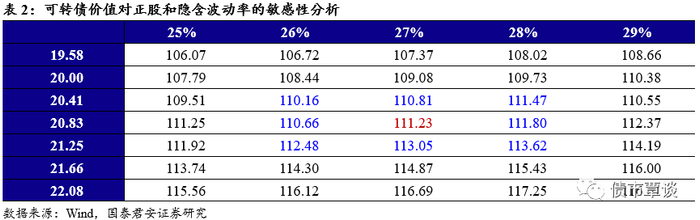 【条款分析】本次可转债发行期限6年,票息为递进式(0.5%,0.8%,1.2%,1.8%,2.5%,3.0%),到期回售价为118元(含最后一期利息)。主体评级为AA-,转债评级为AA-,按照6年AA-中债企业债 YTM 6.94%计算,纯债价值为83.05元,YTM为3.85%。发行6个月后进入转股期,初始转股价20.04元,12月17日收盘价为20.83元,初始平价103.94元。条款方面,15/30+85%的下修条款,15/30+130%的有条件赎回条款,30/30+70%的回售条款。可转债潜在稀释比率约为15.68%。