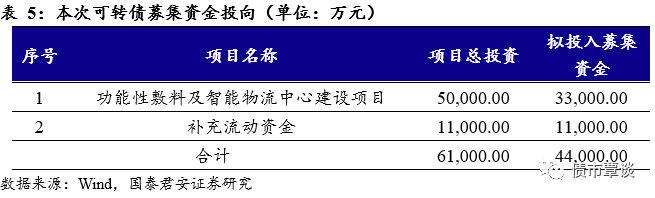 公司本次发行可转债拟募集资金总额不超过4.40亿元,将主要用于功能性敷料及智能物流中心建设项目及补充流动资金。