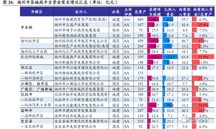 5、扬州市城投平台待投资规模情况汇总