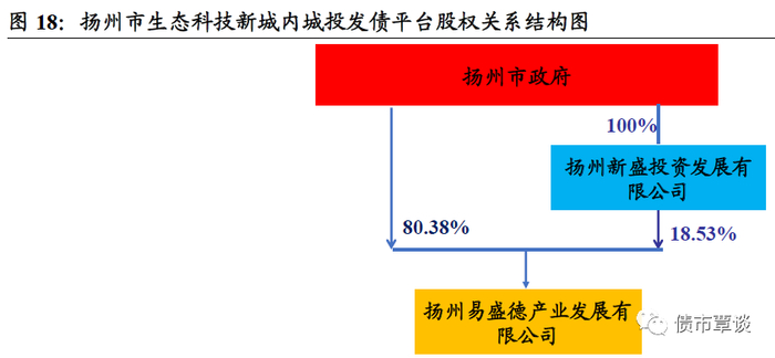 生态科技新城内有2家平台公司,分别为扬州新盛投资和扬州易盛德产业发展公司,负责生态科技新城基建、土地开发以及房地产业务等。