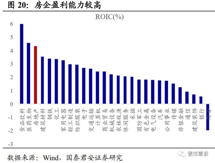 1)强悍的盈利能力。以ROIC作为衡量盈利能力的指标(加回资本化利息),地产行业位列全行业第三,较高的盈利水平充分保障偿债能力。