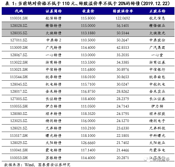 高溢价率优质券对正股的启示 | 转债周报(2019.12.16-12.20)