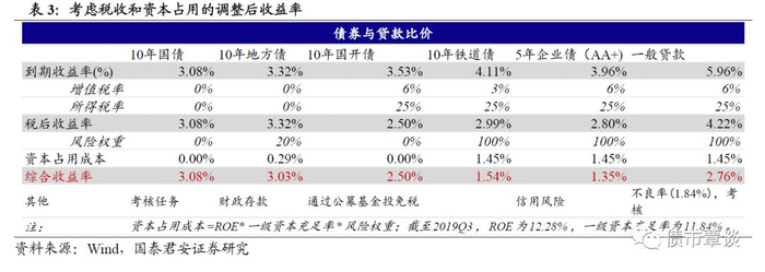 若预期负债成本趋势下行,利率交易会提前反应。在推进宽信用的进程中,两大趋势短期难以逆转:银行存贷款增速缺口缓慢走扩、传统业务中息差空间压缩。传统存贷款息差业务创收难,考虑税收和资本占用的调整后收益,长端利率债仍有相对配置价值。