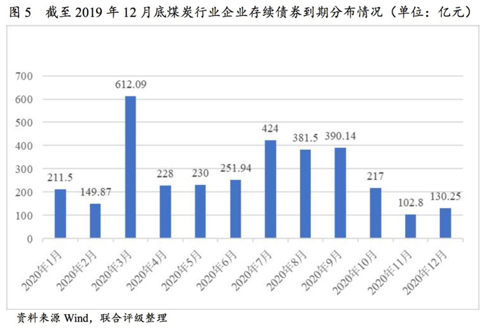 从煤炭行业企业债券到期分布情况看,煤炭行业存续债券于3月较为集中,合计612.09亿元,涉及38只债券、19家发行人;具体看,3月到期的债券主要由级别在AA+及以上的13家企业发行;级别在AA及以下的6家发行人到期债券总额仅33亿元,整体偿还压力不大。