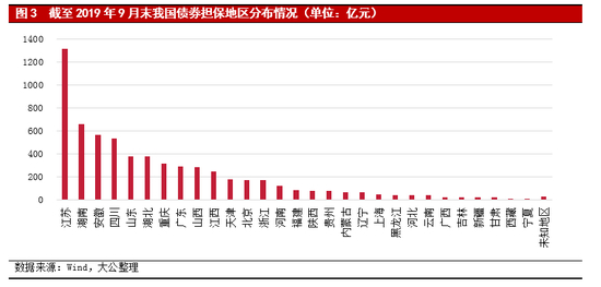 我国融资担保行业债券担保业务在区域分布上较为集中,且仍以国有企业债券或城投债担保为主,但部分以债券担保为主的融资担保机构受所担保债券集中到期影响,易形成一定的流动性压力。截至2019年9月末,融资担保公司担保债券的发行人以江苏、湖南、安徽、四川等地为主,上述地区债券担保余额合计占比超过48%。以上省份多为广义政府债务压力较大地区,与城投债担保比例较高的特征具有高度相关性。