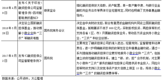 整体来说,各项细化制度的发布和实施有助于融资担保机构的规范经营,部分不满足监管要求的担保机构或将被淘汰。预计未来各地将根据《条例》、四项配套制度以及《补充规定》出台更为具体的实施细则,也将下发更多的整改通知,行业及各地监管力度都将有所加强。同时,在政策引导下,政府性融资担保公司和再担保公司将坚守“支小支农”的担保主业,行业整体运行将更加健康规范。