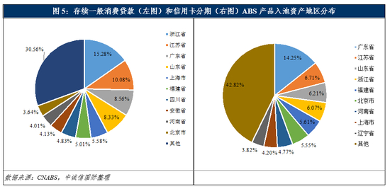 从区域分散度来看,信用卡分期ABS产品的发起机构主要为国有大行及股份制银行,基础资产分布于全国各地区,区域分散度较好,单一地区经济变动对整体产品影响有限。个人消费信用贷款ABS产品的基础资产区域集中度高于信用卡分期ABS产品,这主要是由于发起机构以城商行和消费金融公司为主,经营区域相对集中,但目前存续产品中尚无地区分布集中于疫情高发地区的产品。