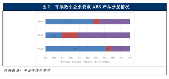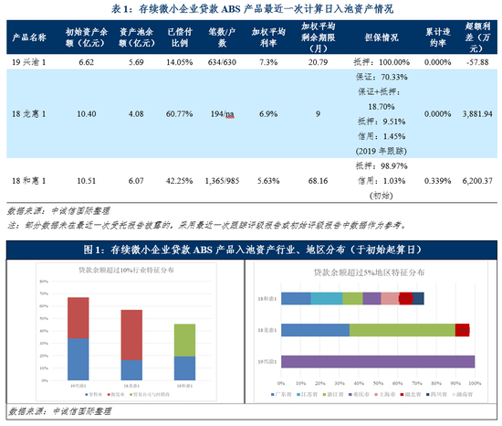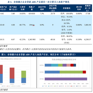4)部分存续产品资产池加权平均剩余期限较短。“18龙惠1”入池资产加权平均剩余期限不足1年,但“19兴渝1”和“18和惠1”加权平均剩余期限分别为20.79和68.16个月。如果这些产品中入池的小微企业受疫情影响严重,难以短时间内恢复生产经营,可能对证券的偿付有较大影响;、