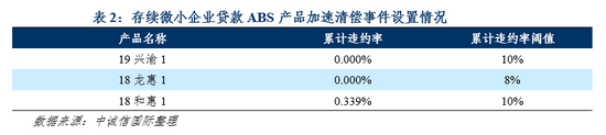 此外,考虑到目前为缓解中小微企业资金压力,金融机构陆续出台各种减免措施,可能影响入池资产短期内的现金流回流,存续微小企业贷款ABS产品均无流动性储备机制的设置,流动性风险有所加大。