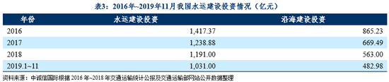 从港口设施建设来看,十三五以来,我国水运建设投资规模整体呈下降趋势,根据交通运输部公布数据,2019年1~11月,我国完成水运建设投资1,031.30亿元,其中沿海建设完成投资482.98亿元,分别占2018年全年完成额的86.59%和85.79%。针对疫情的延期复工复产将导致水运建设进度进一步放缓;但总体而言,目前我国港口吞吐能力比较宽裕,长期来看本次疫情不会对我国港口设施供给能力产生较大负面影响。
