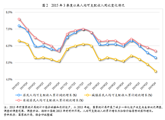 2019年,全国居民人均可支配收入3,0733元,扣除价格因素实际增长5.8%,与经济增长基本同步,与人均GDP增长大体持平。按常住地分,2019年,城镇居民人均可支配收入42,359元,实际增长5.0%;农村居民人均可支配收入16,021元,实际增长6.2%。