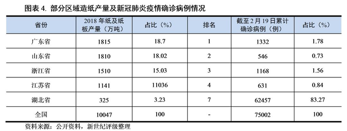 7. 区域分布特征使得短期内造纸行业受疫情影响有限。