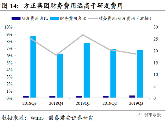 企业盲目扩张追求多元化发展,反而可能适得其反拖累主业。盐湖股份拓展了镁、化工等板块向综合型化工企业转型,但由于利息负担重、盈利能力差最终拖垮主业;以IT为产业基础的北大方正脱离了“产学研”模式朝金融公司发展,研发费用占营业收入比重仅为0.36%,远低于高科技企业10%的平均水平,而北大方正财务费用则为研发费用的近20倍。从盐湖股份、北大方正宣布重整,到如今海航集团被政府介入,在这些案例中我们都可以看到企业激进扩张实现多元化布局,最终反被多元化业务拖累的缩影。企业应当在扎实主业的基础上,通过核心竞争力的拓展实现多元化发展;而部分巨无霸企业大量举债、多点布局,但多元化业务并未与其主业形成协同效应,反而可能因为沉重的利息负担和“萎靡不振”的多元化业务拖累主业经营。