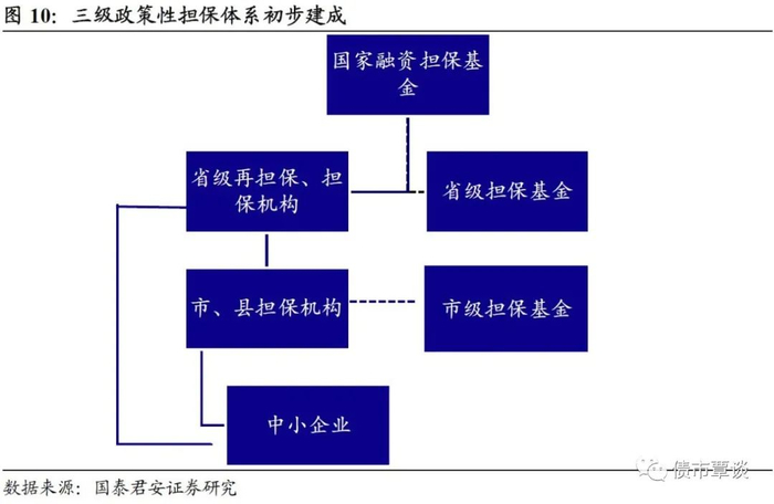 政策性信用担保体系来看,目前已初步形成了由国家融资担保基金和省级担保、再担保基金机构/基金、市县融资担保机构构成的三级体系。