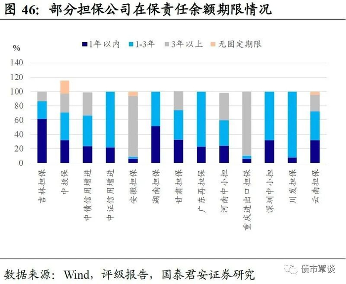 在“担保情况”中,我们选取了客户、行业、业务期限和区域四类集中度情况,并结合在保责任余额,以定量+定性的方式评价各公司的担保情况。