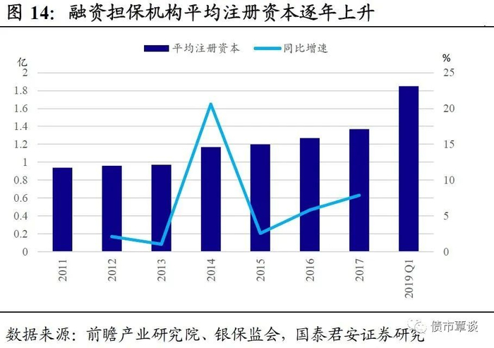 (6)无论是政策性担保机构提升服务能力,还是商业担保机构获取更大盈利角度看,行业加快补充资本是趋势。资本实力的大小是衡量担保机构业务代偿能力的重要指标,是担保机构扩张业务规模,防范风险的基础。此外,监管趋严带来部分担保机构杠杆倍数提高,资本覆盖率有所下降,资本补充需求上升。