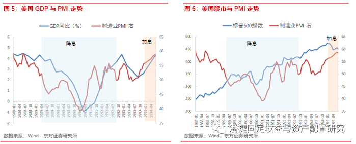 1989年6月开始经济增速回落,直至1991年企稳回升,1992年9月降息周期结束。1989年6月,经济增长动能有所减弱,PMI降至50,GDP同比增速从之前的4.32%降至3.75%。1991年2月开始PMI回升,截至1991年6月,PMI已回升至荣枯线以上,1991年末,GDP同比由负转正。