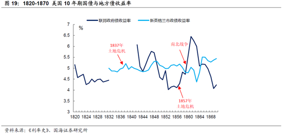 1837年与1857年两次土地泡沫破裂后,因为商业银行坏账增加、流动性紧缩,国债被金融机构抛售,经济危机期间债券收益率出现明显上行。