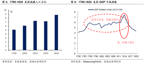 19世纪初,农业在美国经济中居于主导地位。受土地开垦与人口高增长的推动,建国初期的美国保持了较高的经济增速。农业产品价格成为影响经济周期的关键因素,从而影响利率走向。战争等外部因素,同样影响了海内外农业产品价格与需求。