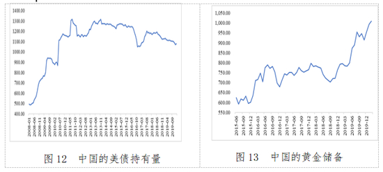 1.推动外汇储备配置多元化。近年来,中国小幅减少美债投资,快速增加黄金储备(图12和13)。鉴于美国当前的债务风险,建议进一步调整外汇储备投资结构,推动资产配置多元化。